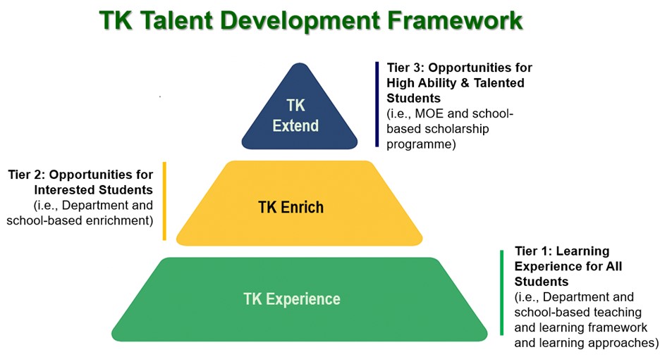 TK offers a comprehensive Talent Development Programme that nurtures students’ strengths and supports them in realising their fullest potential. Built on a clear and progressive framework, the programme adopts a school-wide approach with three tiers of development, ensuring that all students - regardless of their starting point - can discover, develop, and extend their talents in meaningful ways to become innovative and engaged learners.